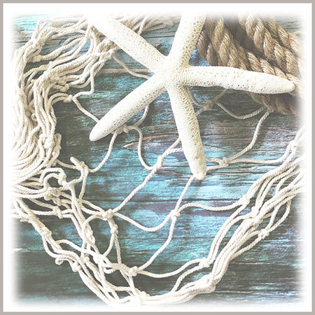 This large, all natural, cotton netting is a fine nautical accent for a table top setting.  It can be draped, tie it up for beach-y bunting or tack up for a quick and easy wall decoration.  This knotted netting is an excellent ready-to-hang wall art.  Made from 100% genuine natural cotton.