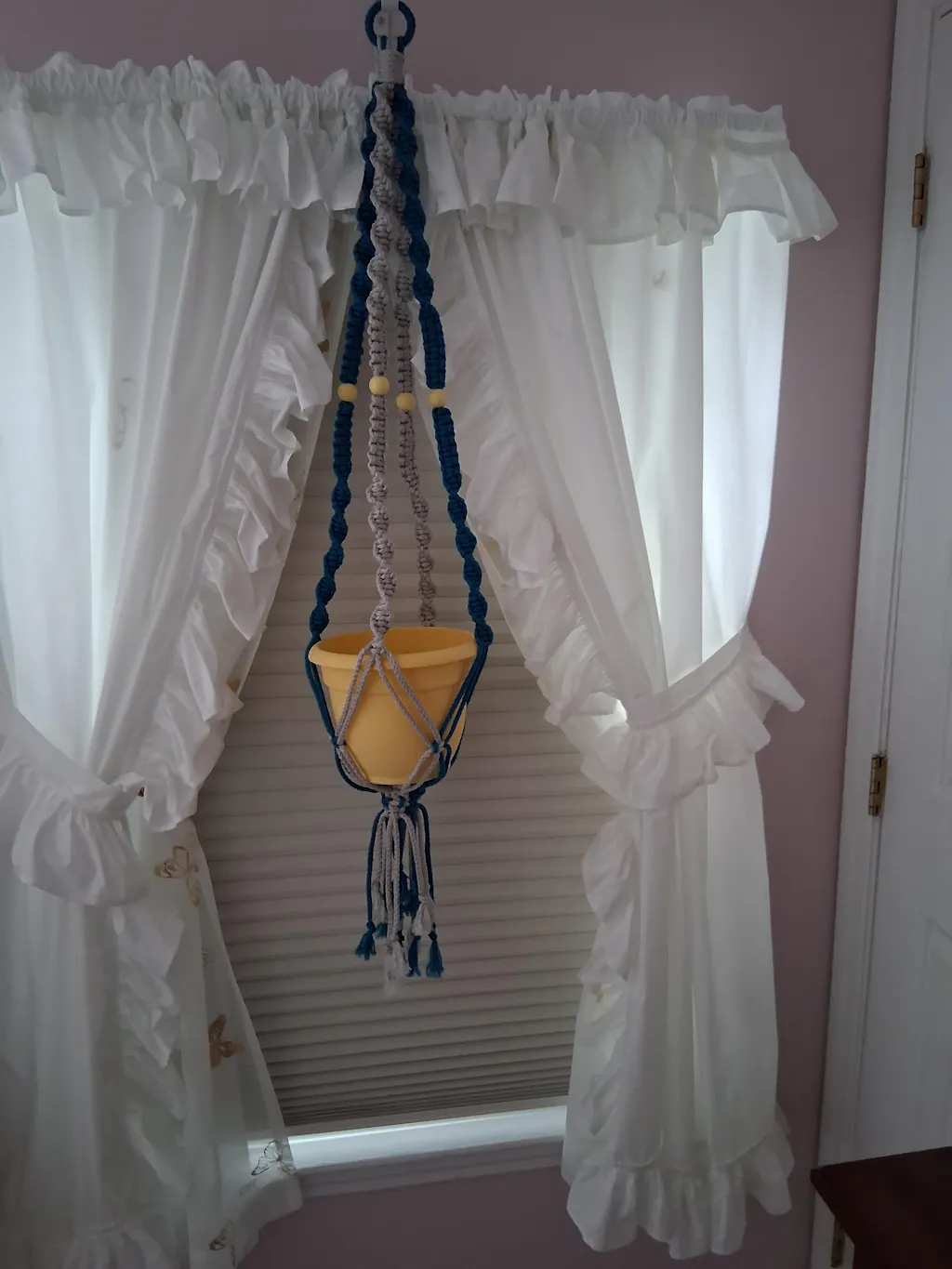 Purchased these beads in unpainted and painted them yellow to match my doors. Used them on a macrame hanger that I made for outside.