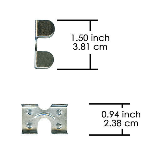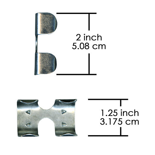 The clamps are made from composite metal with a brushed steel finish.  Each package contains two clamps.  You will need to provide your own hammer and elbow grease.